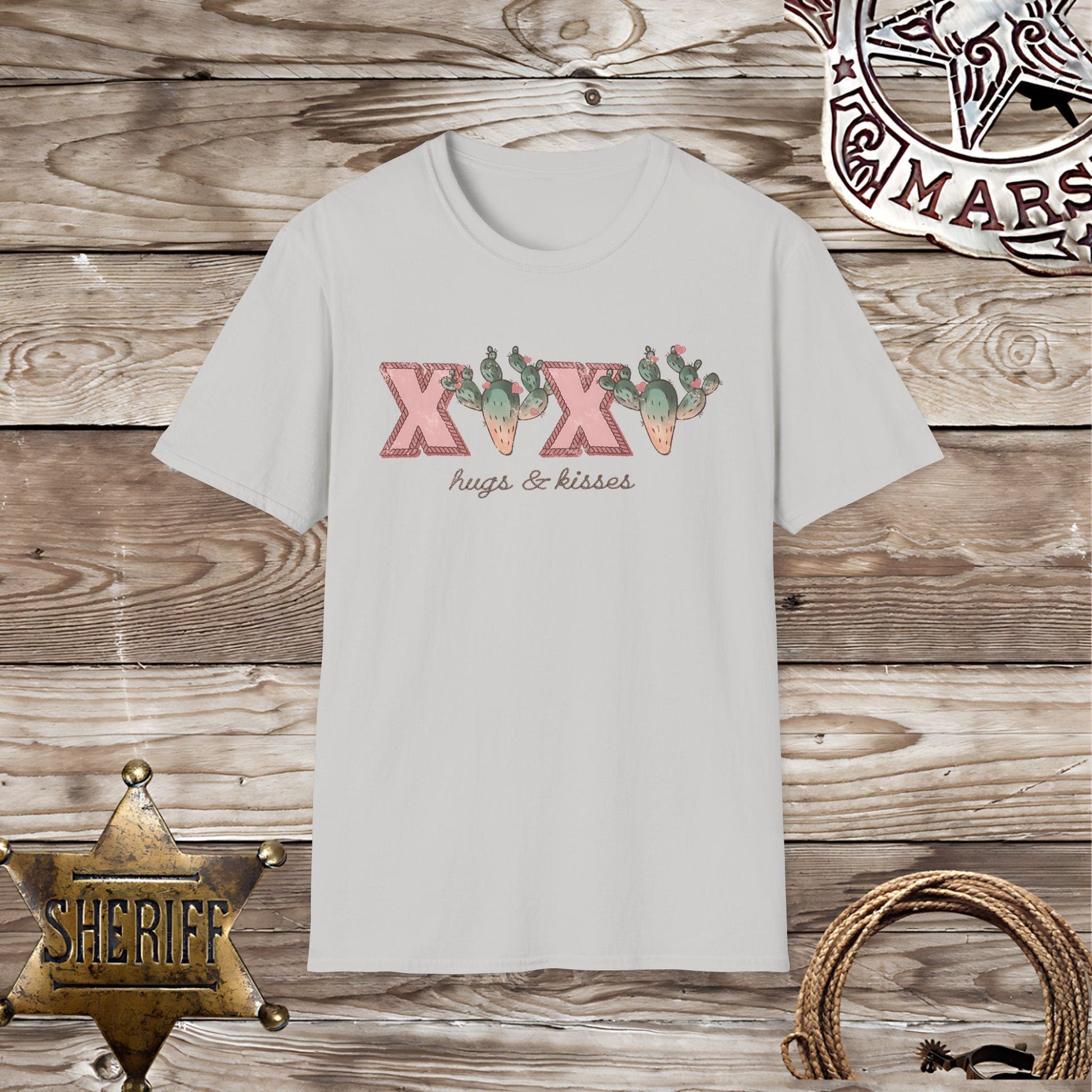 Spread the love with the Softstyle Unisex T-Shirt - Hugs and Kisses XOXO. Featuring a playful design of x's and a cactus, this shirt is perfect for those who love to give and receive hugs and kisses. Made with soft fabric, it's also incredibly comfortable for all-day wear.