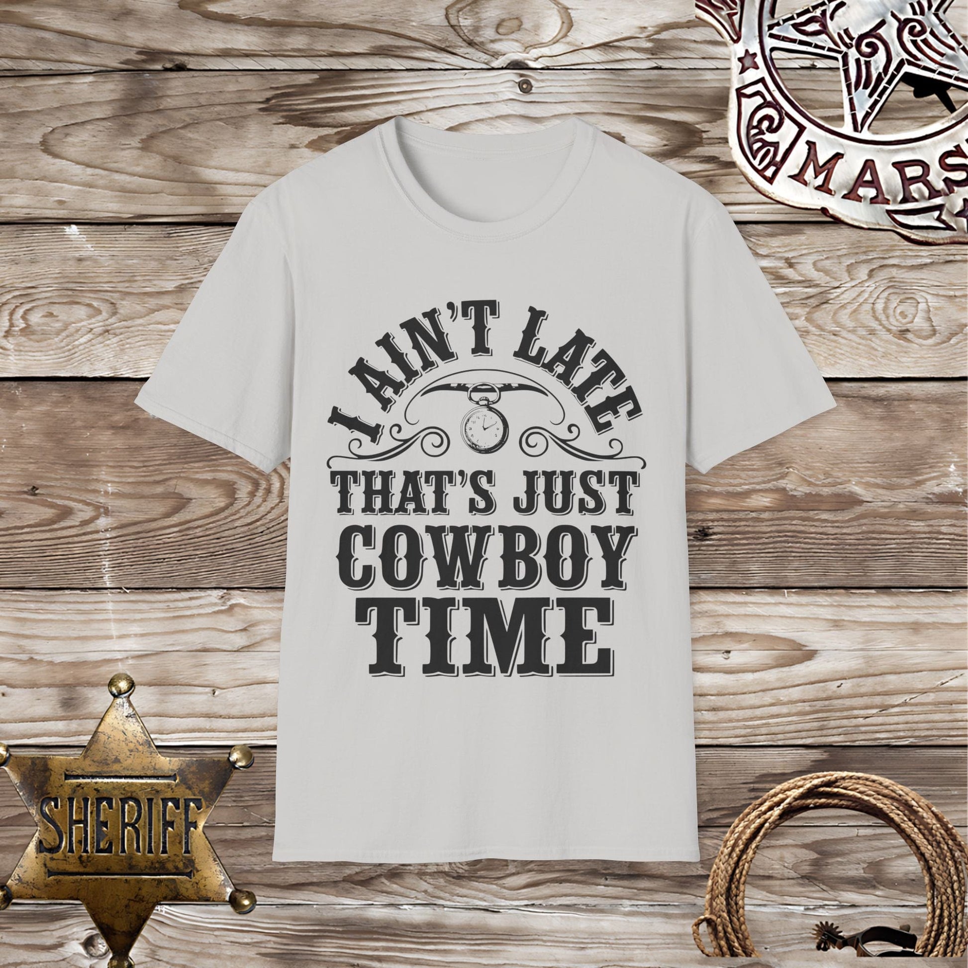 We use high-quality cotton or cotton-blend tees that feel great and hold up strong — perfect for rodeos, bonfires, or Sunday sittin’.